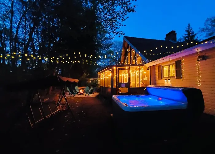 En séjournant à la villa Spacious Gateway, 15 Min To Camelback Ski, Hot Tub, Game Room Pocono Country Place, les clients peuvent facilement se rendre au Parc d'État Tobyhanna, situé à 4 km. Cette villa propose une piscine en plein air ouverte en saison ainsi qu'un jacuzzi pour se détendre après une journée bien remplie.